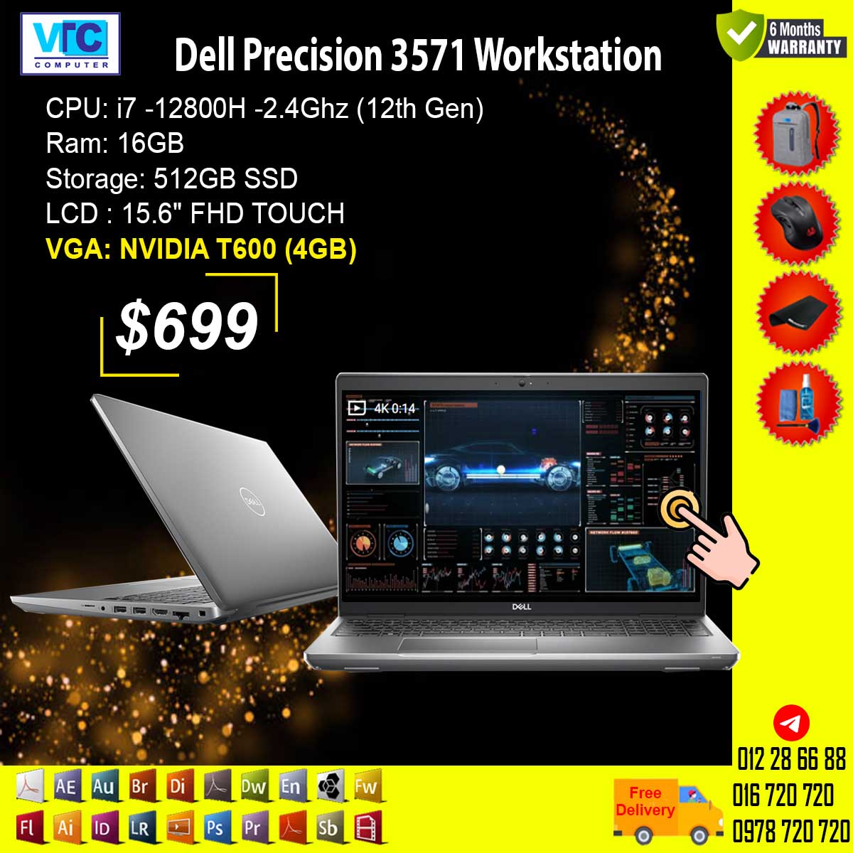 i7 -12800H -2.4Ghz / RAM: 16GB / 512GB SSD/ 15.6" FHD Touch / NVIDIA T600 (4GB)