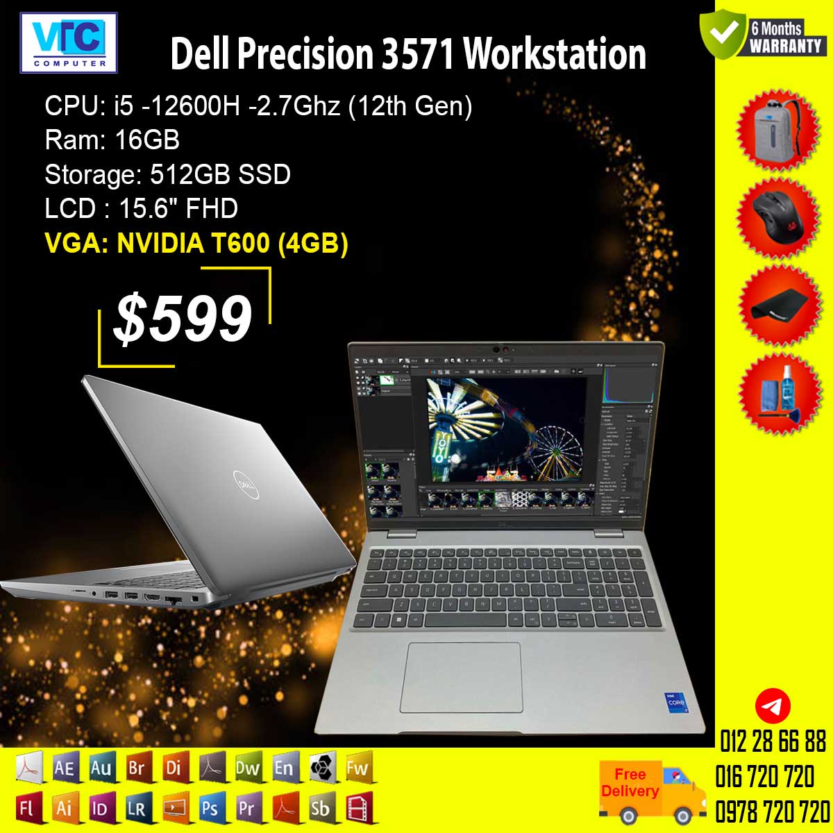 i5 -12600H -2.7Ghz / RAM: 16GB / 512GB SSD/ 15.6" FHD/ NVIDIA T600 (4GB)