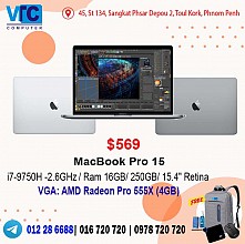 i7-8850H -2.6GHz/ Ram 32GB/ 500GB SSD/ 15.4" 2K/ Pro 560X (4GB)/ Silver / Touch Bar