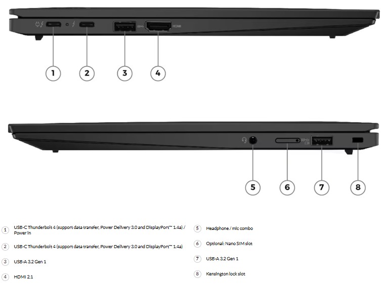 - Optional: 1 x Nano-SIM card slot (WWAN support models)